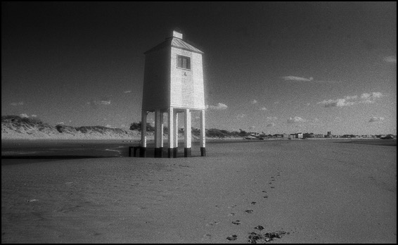 Two more infra-red landscapes liberated from the family photo album, as taken by my mum. The lighthouse is on the shoreline of Burnham-on-Sea in Somerset, a little to the north of the town centre. The church, meanwhile, is marked as "Wilton", although a cursory glance around the area (I live in Salisbury, 'next door' to Wilton) hasn't helped me find it. It may be a different Wilton - my mum took infra-red all over the south west.