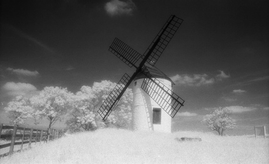 Two more infra-red landscapes liberated from the family photo album, as taken by my mum. The lighthouse is on the shoreline of Burnham-on-Sea in Somerset, a little to the north of the town centre. The church, meanwhile, is marked as "Wilton", although a cursory glance around the area (I live in Salisbury, 'next door' to Wilton) hasn't helped me find it. It may be a different Wilton - my mum took infra-red all over the south west.